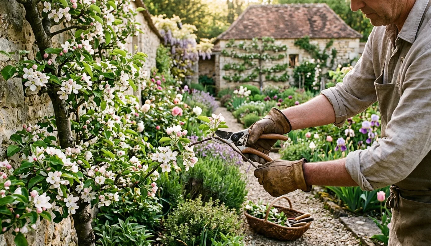 Au printemps, entre mars et mai, tu n’interviens plus que pour des retouches légères et des corrections. À ce stade, les bourgeons se sont déjà développés et tu peux voir exactement où va pousser le feuillage. Cette visibilité te permet de supprimer les branches mal placées qui auraient pu être conservées en hiver.