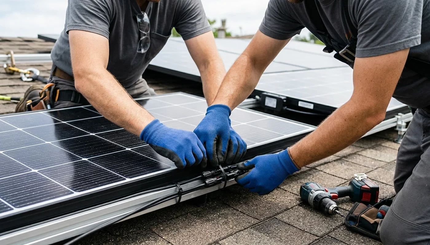 Les connexions entre panneaux doivent impérativement utiliser des connecteurs MC4 certifiés, jamais de dominos électriques classiques qui ne résistent pas aux conditions extérieures. Chaque connexion mal sertie crée une résistance qui chauffe et peut, à terme, provoquer un arc électrique. Investis dans une pince à sertir MC4 de qualité si tu réalises toi-même tes connexions, c’est un gage de sécurité.